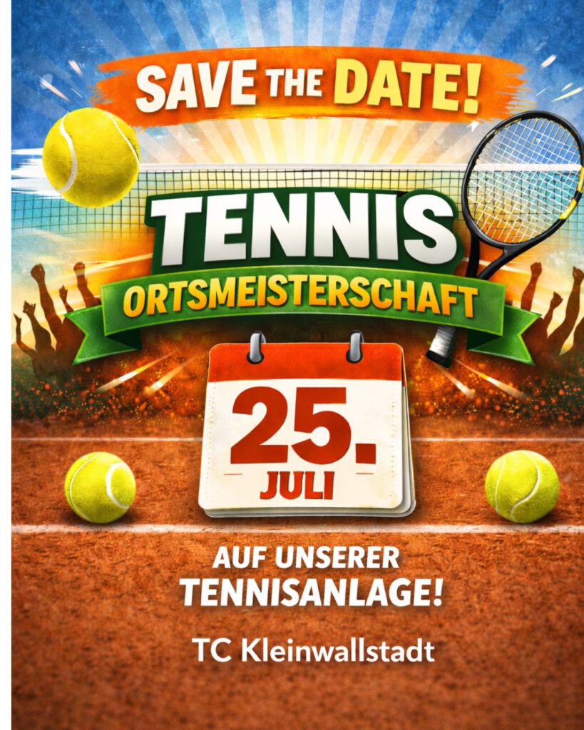 Seid dabei, wenn am 25. Juli unsere Tennis-Ortsmeisterschaft stattfindet! 😍